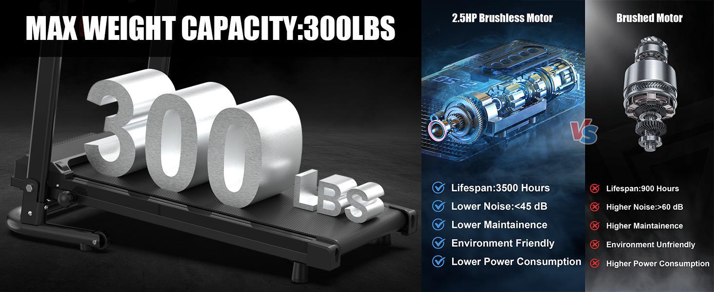 【Brushless Electric Motor】The treadmill with handles features a 2.5 horsepower brushless peak motor that reduces mechanical wear and tear for longer life. With a speed range of 0.5-6.0mph and a peak load capacity of 300 pounds, this foldable treadmill delivers a smooth, challenging workout that's perfect for home or office use.